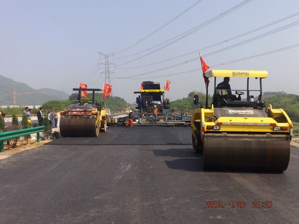 為保證此次試驗(yàn)段攤鋪順利進(jìn)行,項(xiàng)目部于4月25日晚召開專項(xiàng)會(huì)議,對(duì)各施工班組及機(jī)械操作人員進(jìn)行詳細(xì)的技術(shù)、安全交底,對(duì)整個(gè)施工過程的各個(gè)環(huán)節(jié)進(jìn)行了詳細(xì)確認(rèn),將責(zé)任、要求細(xì)化到個(gè)人。會(huì)議強(qiáng)調(diào)在施工過程中要嚴(yán)把質(zhì)量關(guān),瀝青出場(chǎng)溫度、到場(chǎng)溫度、攤鋪溫度、初壓溫度、復(fù)壓溫度、終壓溫度等相關(guān)指數(shù)均要在設(shè)計(jì)范圍內(nèi),同時(shí),安全保障措施等也要控制到位。