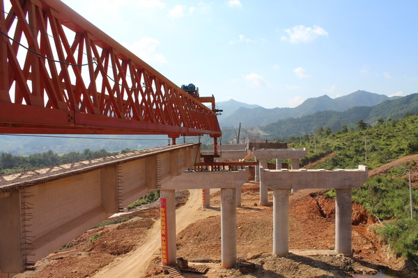 昌寧高速C5標(biāo)完成龍坊高架第一片40米T梁架設(shè) 發(fā)布時(shí)間:2014年09月18日 來源:昌寧高速C5標(biāo) 發(fā)布人: 作者:王振堂 瀏覽:2740次 9月18日上午9時(shí)18分,昌寧高速公路C5標(biāo)龍坊高架第一片40米T梁順利架設(shè)成功,標(biāo)志著作為全線控制性工程的龍坊高架橋進(jìn)入了上部施工階段,極大地提振了項(xiàng)目部全體員工和參建隊(duì)伍的戰(zhàn)斗精神。