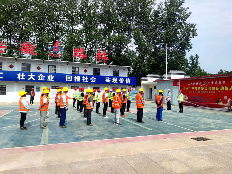 項目部堅持一手抓安全、一手抓生產,以“兩不耽誤、兩相促進”為宗旨,加大宣傳力度,力爭實現“1+1>2”的效果。6月1日,項目部聯合霍邱縣交通局舉行了安全宣誓暨全國安全月活動啟動儀式,參觀安全月主題圖片展、學習安全生產相關知識特別是安全生產“八安八險”等內容,監理單位、項目管理人員、勞務隊伍代表等30余人還進行了安全生產集體宣誓。5月,項目部組織召開勞動競賽啟動儀式,結合項目進度制定了競賽活動方案并及時宣貫、展開討論。同時,在項目部及施工現場醒目位置懸掛橫幅23條,在公告欄張貼各班組施工進度完成情況并動態更新,營造勞動競賽濃厚氛圍。設置安全圍擋及安全警示標牌,保證進度的同時落實安全制度。