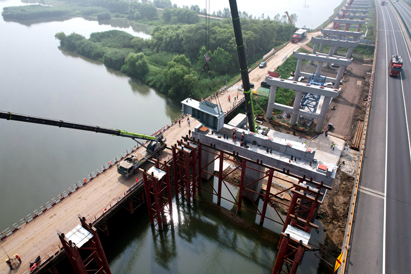 7月1日上午9時46分,伴隨著施工現場機械的轟鳴聲,安徽路橋公司承建的G36寧洛高速蚌明改擴建01標項目首片鋼箱梁順利架設,這也是G36寧洛高速蚌明改擴建工程全線架設的首片鋼箱梁。這是繼項目完成G36寧洛高速蚌明改擴建工程首座拼寬橋預制空心板梁架設、首片箱梁架設、首座上跨橋拆除等之后的又一重大節點性工程,為項目進一步掀起大干熱潮吹響奮戰集結號。