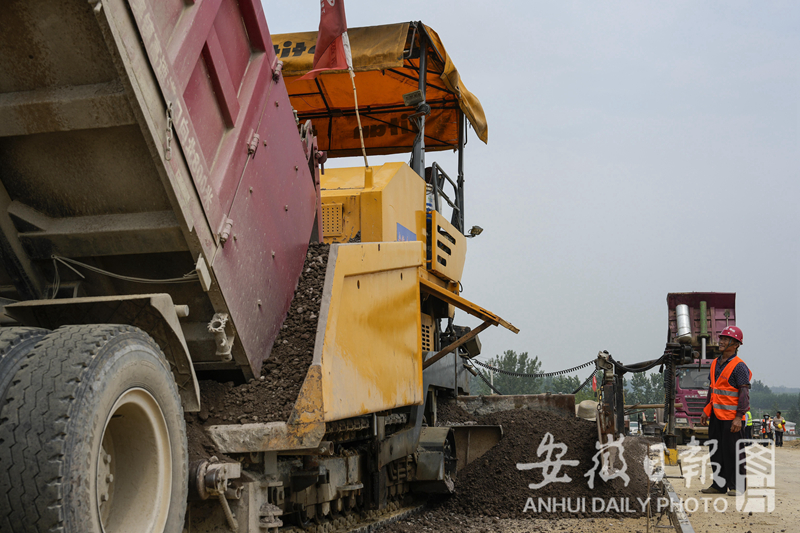 7月25日,拍攝的由安徽路橋承建的霍邱縣產業振興公路。該項目全長 19.245公里,目前路基工程已完成,正在全力推進路面施工階段,計劃2023年10月完成項目整體建設任務。建成后將解決沿線5個鄉鎮30萬群眾出行問題,帶動沿淮、沿淠鄉鎮產業發展,鞏固脫貧成效,助力鄉村振興。
