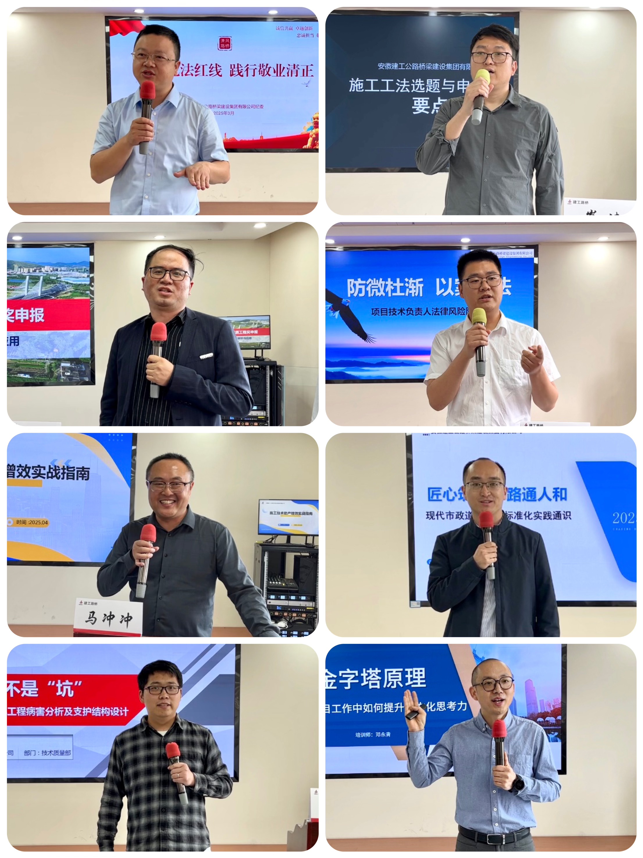 培訓班啟用了多位新選拔內訓師的課程,包括施工工法選題與申報、國家優質工程獎申報、基坑工程常見病害分析及支護結構設計、市政工程道路標準化施工、施工技術助產增效、廉潔風險防范、法律風險防范以及通用管理課程等,突出一線典型實戰案例探討,深入剖析原因。通過場景重現、主題討論、分享點評等形式,促進參訓學員間互動交流與經驗傳承,有效幫助項目技術管理人才隊伍識別技術盲點及誤區。
