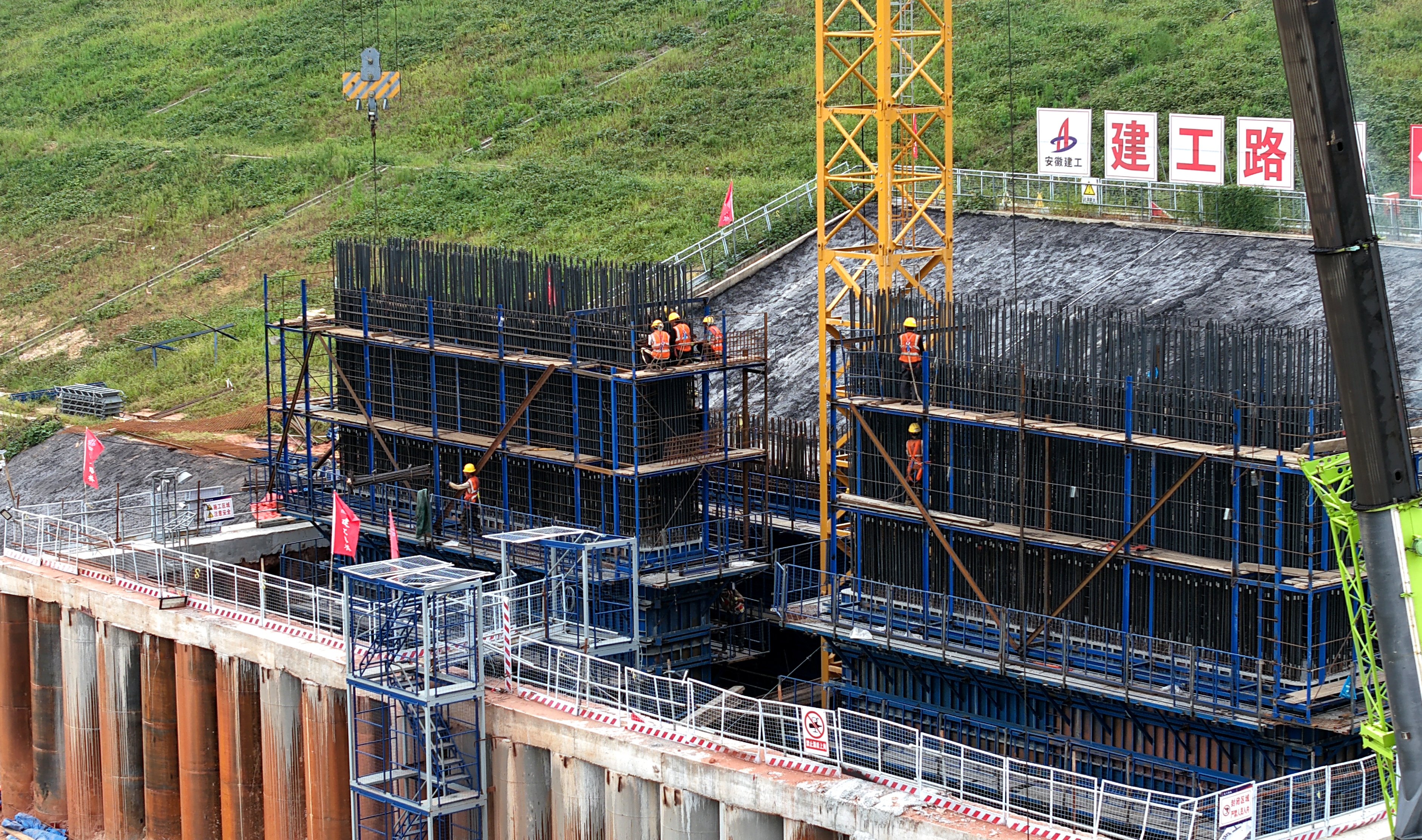 引江濟淮特大橋共設4座主墩承臺,全程采用C30混凝土一次性連續澆筑完成,累計澆筑混凝土約3843方。針對深基坑施工空間受限的核心難題,項目部制定專項施工方案,多次組織技術人員進行現場勘察與施工模擬推演,持續優化施工流程與人員分工,并合理規劃施工通道,最大限度提升施工效率,確保各工序無縫銜接。