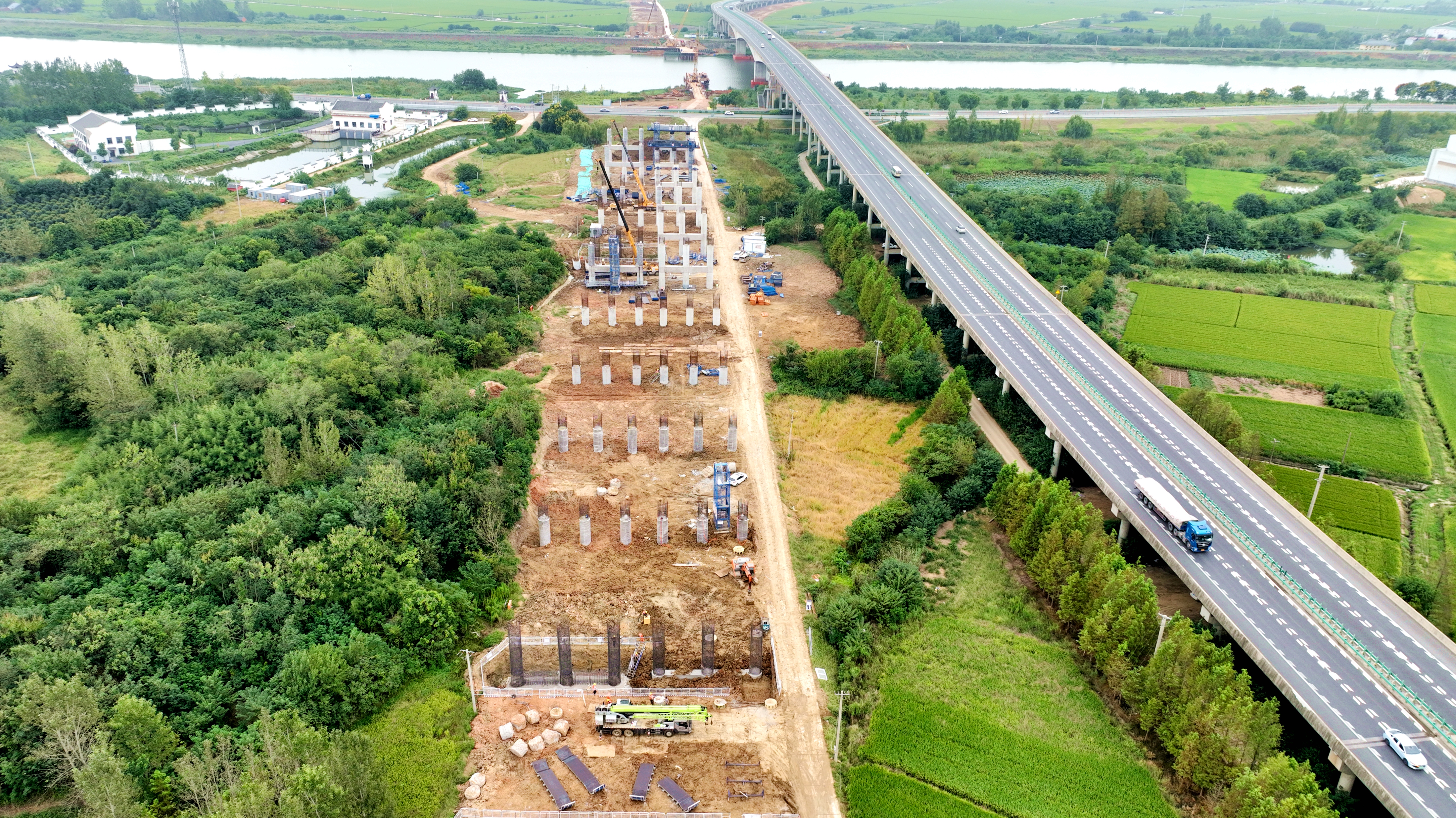 項目包含特大橋2座、大橋1座、中橋1座,共需澆筑樁基1488根。自項目開工以來,面對征地拆遷、高壓桿線遷改、千年古遺址保護等一系列難點堵點,項目組織黨員先鋒隊靠前協調破解難題,積極創造有利施工條件,同時緊盯節點目標,精準優化人力、設備等資源配置,確保各工序銜接順暢,推動施工進程穩步向前。