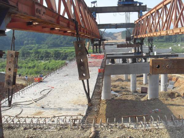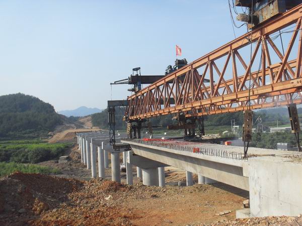 5月28日下午4時,在陣陣喜慶的鞭炮聲中,隨著箱梁的穩穩落下,績黃高速02標K12+976.5大橋第一片箱梁成功安裝。此次安裝的箱梁長25米、寬2.85米、重72噸,是第十跨右幅邊梁。據悉,這是績黃高速公路全線安裝的第一片箱梁。