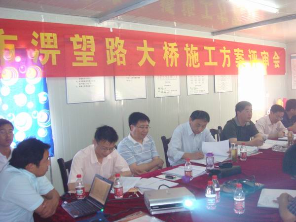 6月1日,六安市淠望路大橋索塔下橫梁、索塔、主橋邊跨及引橋支架現(xiàn)澆施工方案評(píng)審會(huì)在項(xiàng)目部會(huì)議室召開。會(huì)議由公司的總工程師彭申凱主持,特邀了安徽省公路局總工朱新實(shí)、安徽省交通規(guī)劃設(shè)計(jì)研究院橋梁分院院長王勝斌、副院長席進(jìn)、合肥工業(yè)大學(xué)教授方詩圣、安徽省交通職業(yè)技術(shù)學(xué)院土木系主任王豐勝等知名橋梁專家。六安市建委、質(zhì)監(jiān)站、安檢站、淠望路大橋監(jiān)理部、監(jiān)控等單位相關(guān)代表也參加了會(huì)議。