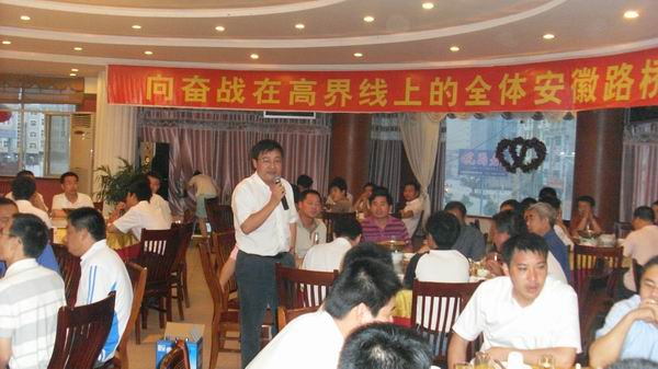 晚上,項目部安排慶功晚宴,公司總經理汪衛東攜路面公司領導班子成員,特地來到工地與大家歡聚一堂。
