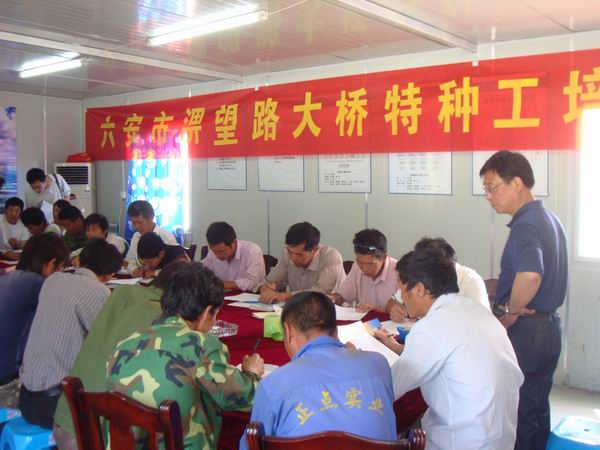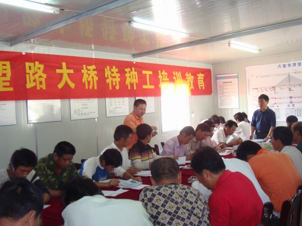 為進一步加大項目部安全生產培訓教育力度,切實提高特種作業人員的安全素質和安全操作技能水平,確保在崗特種作業人員100%持證上崗。淠望路大橋項目部在公司人力資源部的指導和幫助下,以“安全生產月活動”為契機,于6月3日至4日,組織了一期特種作業人員上崗培訓和復審培訓再教育活動。邀請了省安監局特種作業培訓中心的老師直接來到一線,對項目部及各下屬作業隊的電工、焊工、起重工等特種作業人員進行安全技術培訓,培訓的主要內容有特種作業人員安全生產法律法規知識、安全生產管理知識、安全技術理論知識等。
