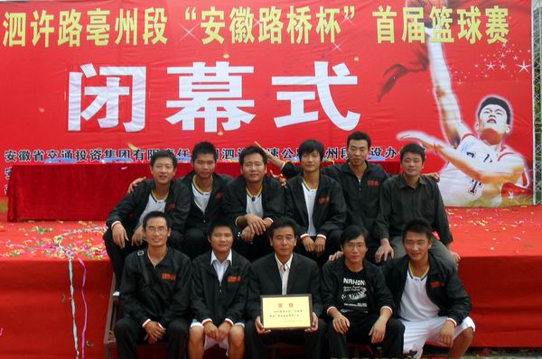 參加本次球賽的有承建泗許高速的五個標段,監理單位,建設辦,交通局及區指共九個代表隊。我項目部代表隊獲得了本次比賽的季軍。在閉幕儀式上,建設辦希望大家把比賽的激情,投入到泗許項目的建設中去,共同努力把泗許高速亳州段建設成精品工程!